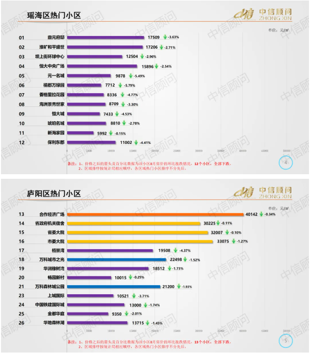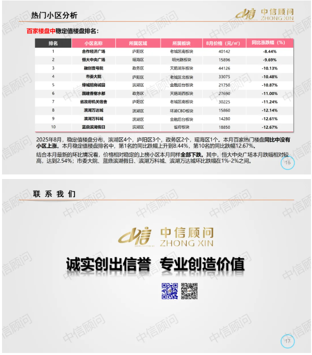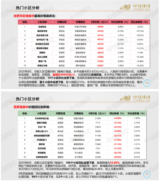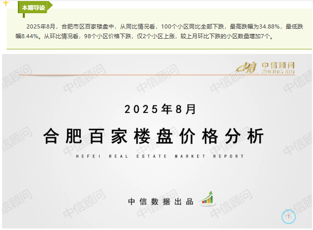 二手房市場 | 2025年8月,合肥百家樓盤環比98下跌2上漲,環比下跌小區數量增加