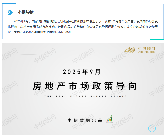 政策導向 | 2025年9月,國家統計局:房地產市場仍然朝著止跌回穩的方向邁進