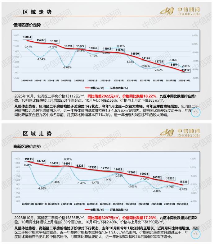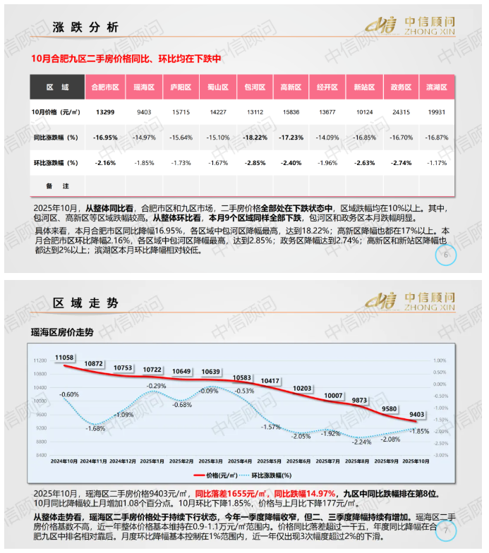 二手房市場 | 2025年10月,合肥住宅均價1.33萬元/㎡,環比下降2.16%,同比下降16.95%